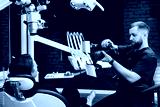 A dentist takes pictures of a client's teeth on a camera during an appointment at a dental clinic. Dental clinic. Concept of dental services and treatment.