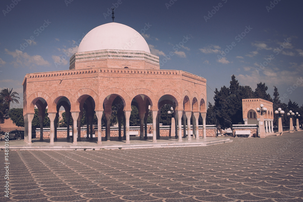 Mausoleum of Habib Bourgiba in Monastir. Tunisia. Old photo style.