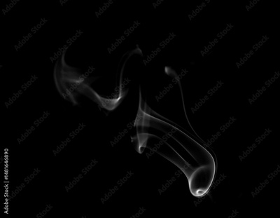 Close-up photo set of abstract white smoke or incense sticks floating on black background. Fog and clouds effect for design. Smog elements.