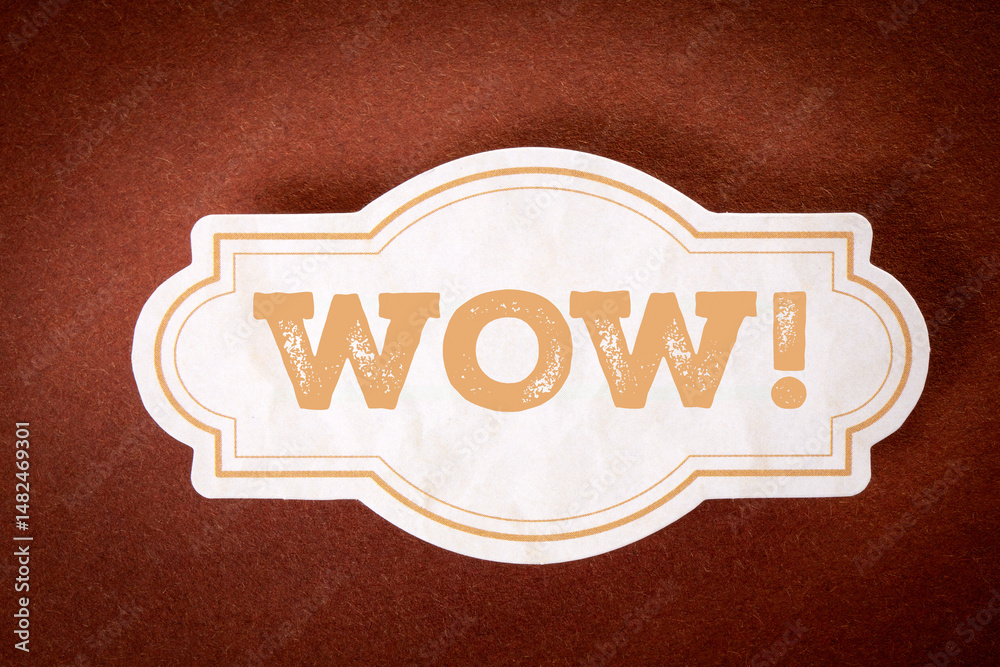 Wow Expression Label on Brown Background Representing Surprise or Excitement