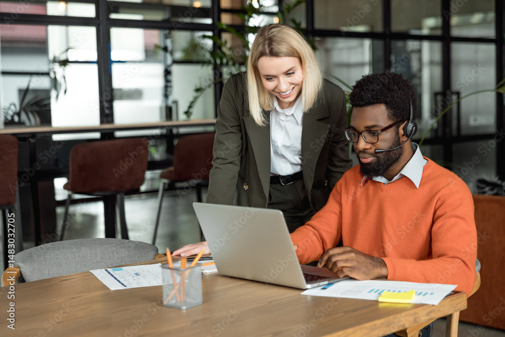 Two business consultants working in the office together