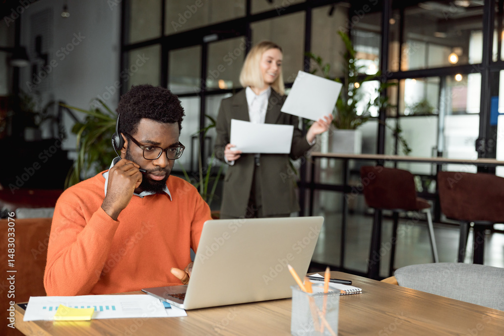Two business consultants working in the office together