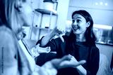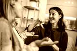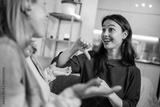 Two Girls Communicating in Sign Language, One Wearing a Hearing Aid