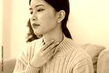 Asian woman put on neck due to a sore throat. female tonsillitis causes a inflammation. treated by taking water, taking antibiotics, consult a doctor, virus, corona virus, Influenza, flu..