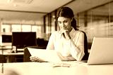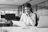 Busy mature business woman bank account manager working in office checking legal document account invoice in office. Businesswoman of middle age executive, attorney lawyer using laptop at work.