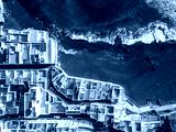 Aerial top view on colorful houses and black beach in small fisherman village, Punta Brava, Tenerife, Canary islands, Spain