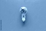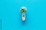 Green plant in a light bulb, top view. Renewable energy and environmental care