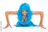 Carnival dancer girl lying, isolated on white