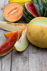Melonen auf Holztisch