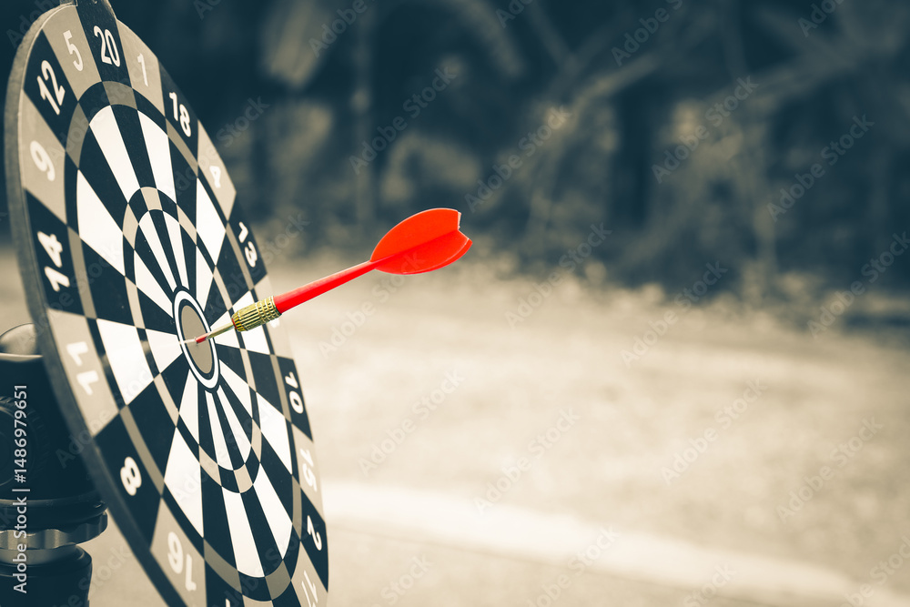 Dark bulls eye target or bullseye have red dart arrows throw hitting challenge the center of a shooting for financial business targeting planning growth or aim to winner goal of business win concept.
