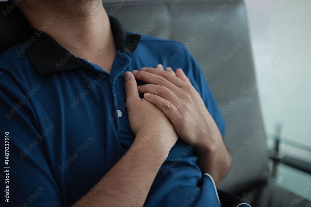 Healthy care, Physical pain, Hands massaging the chest, chest pain, heart pain, heart disease, chest pain
