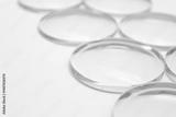 Eyeglasses lens production industry, close-up eyeglasses lenses, glasses lenses, eyeglasses lenses, eyeglasses store business concept