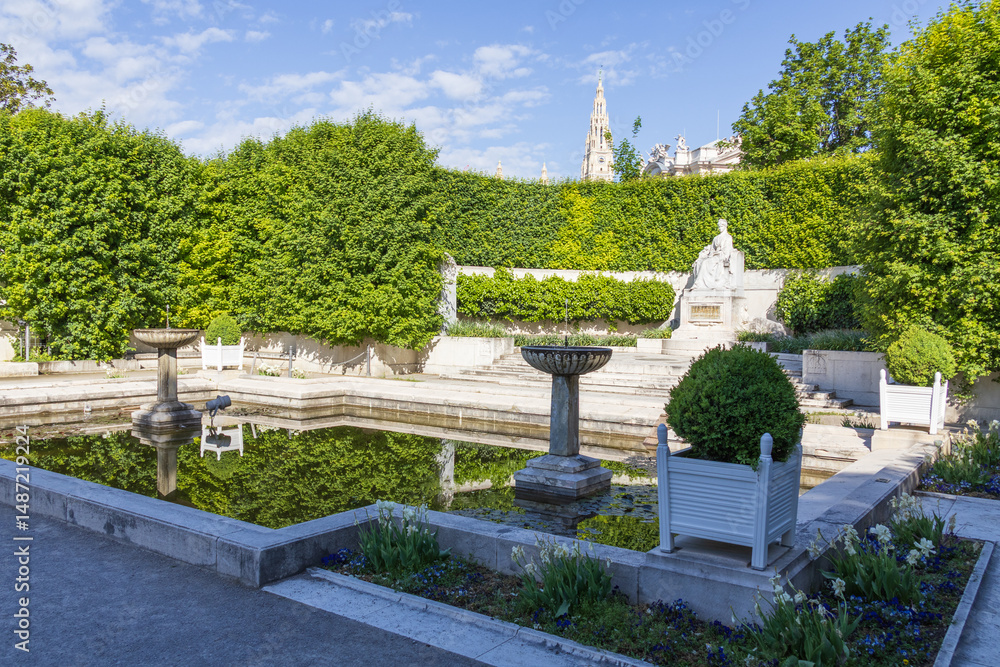 Empress Elisabeth Monument Reflected in Garden Pond at Volksgarten, Vienna