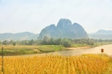 Rice paddies in Central Vietnam during Southeast Asian haze