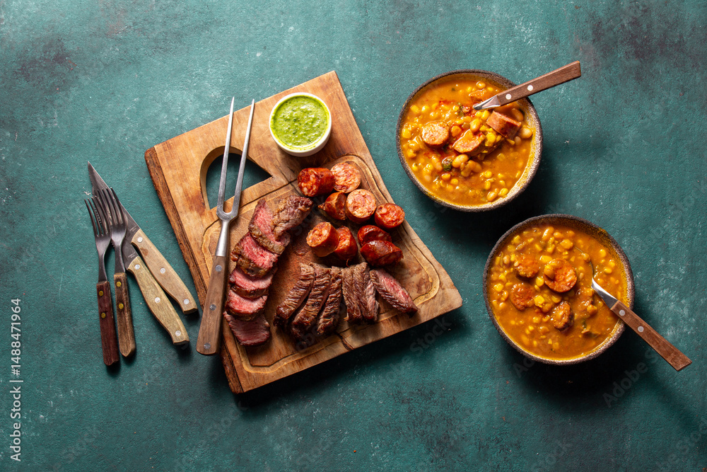 Argentinian Independence Day and Revolution day dishes - locro and asado