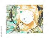Abstract watercolor art with circular patterns in earthy tones and turquoise accents.