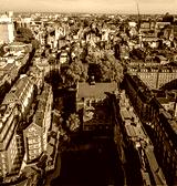 Aerial view of the historic Royal Courts of Justice in London's legal district on a clear day