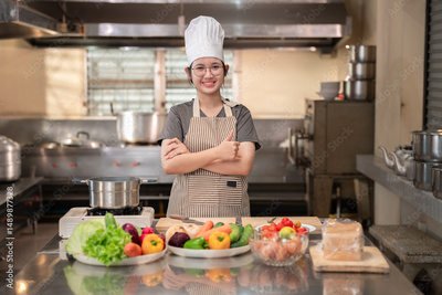 Culinary mastery chef preparing fresh ingredients in kitchen environment professional setting