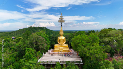 Buriram's Pride. Phra Suphattharabophit and the Stunning Landscape of Khao Kradong, buddha statue in thailand.