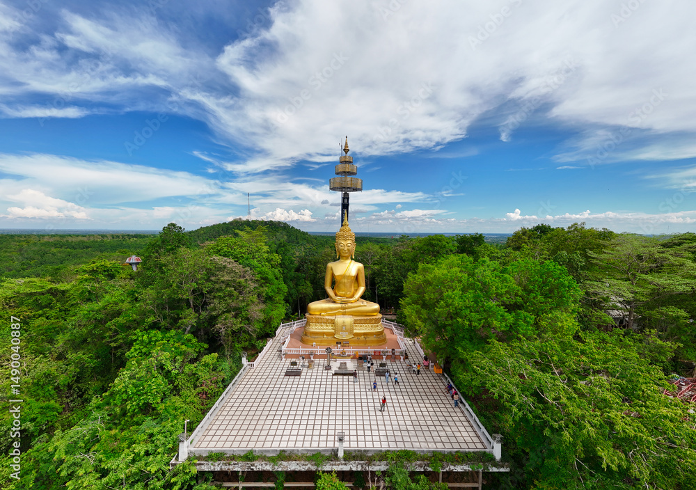 Buriram's Pride. Phra Suphattharabophit and the Stunning Landscape of Khao Kradong, buddha statue in thailand.