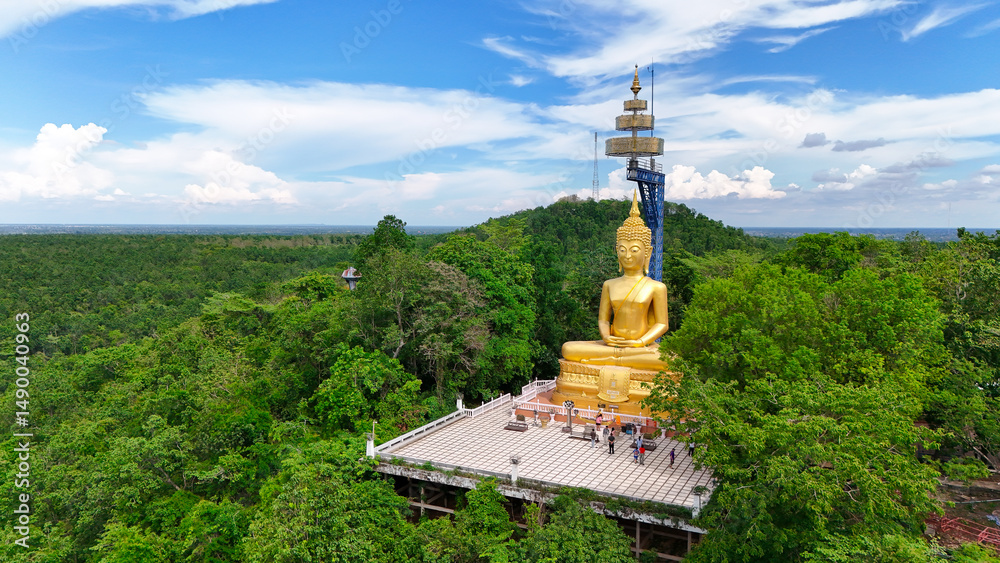 Buriram's Pride. Phra Suphattharabophit and the Stunning Landscape of Khao Kradong, buddha statue in thailand.