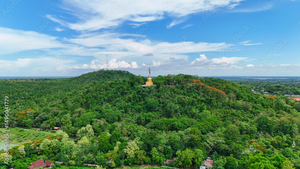 Buriram's Pride. Phra Suphattharabophit and the Stunning Landscape of Khao Kradong, buddha statue in thailand.
