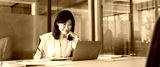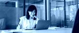 Young businesswoman professional employee using pc doing online banking analysing at workplace. Asian middle-aged business woman working on laptop computer in office, taking notes. Banner, copy space
