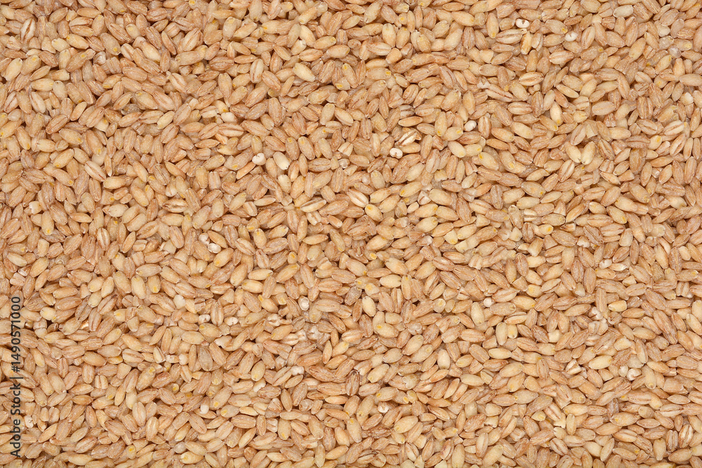 A close-up shot shows a dense pile of light brown pearl barley grains filling the frame