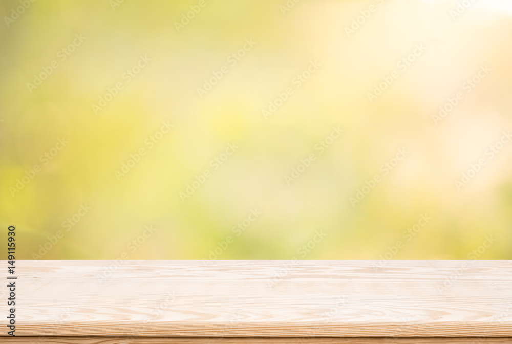 table top on blurred nature background,Space for placing products,Warm light from the sunset