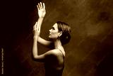 Photo of sensual gorgeous lady dressed sexy outfit enjoying ballet dance isolated blue color background