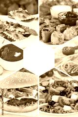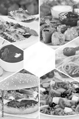 Sammlung Collage Essen Gerichte Restaurant Karte Speisekarte Hochformat