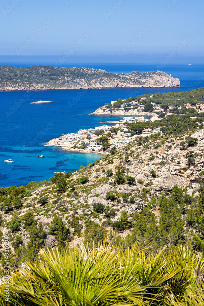 Seascape view at a rocky coastline on Mallorca with the mediterranean sea from a mountain