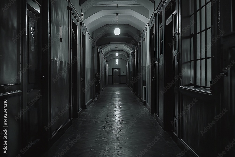 Long Dark Monochrome Corridor with Gothic Architecture Varient 2