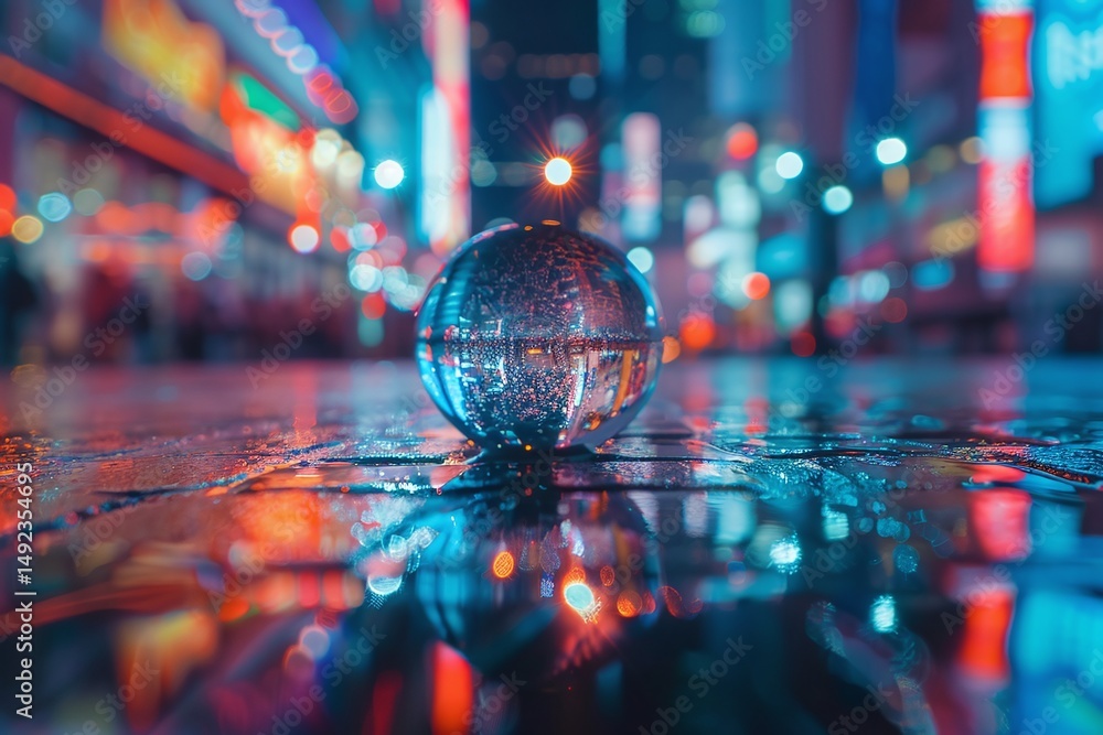 Macro of a Colorful Soap Bubble Reflecting an Urban City Environment with Blurred Background Varient 1