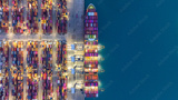 Aerial view cargo container ship global business maritime logistic, Cargo container ship freight shipping international supply chain, Sea freight industrial import export logistic transport industry.