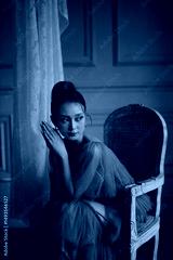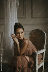Elegant Woman in Brown Gown Poses Gracefully