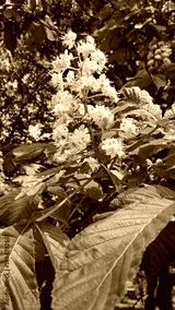 Branch of spring flowering Chestnut with white flowers