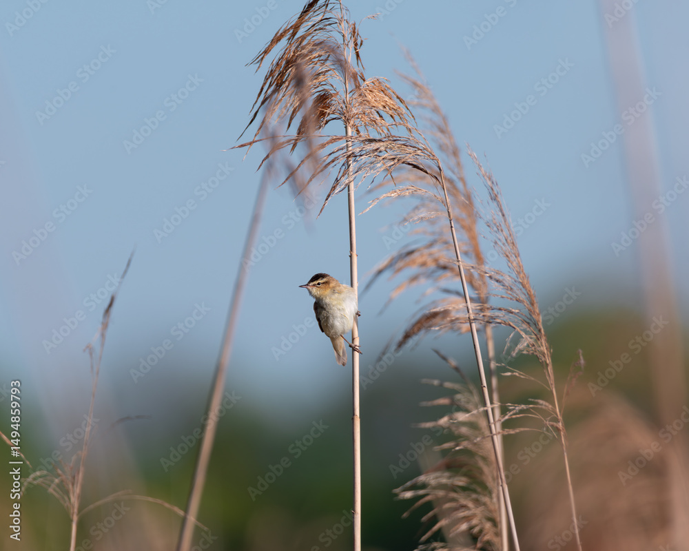 Meadow Warbler in Reeds — Small Songbird in Natural Habitat on a Sunny Day