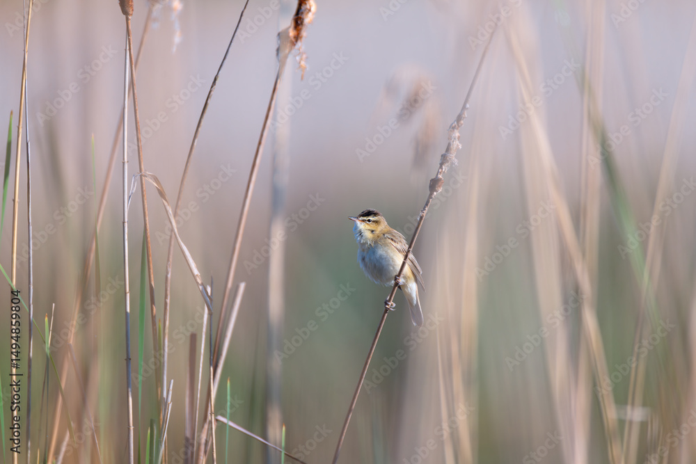 Meadow Warbler in Reeds — Small Songbird in Natural Habitat on a Sunny Day
