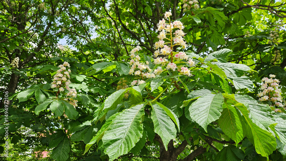 Branches of spring flowering Chestnut with white flowers