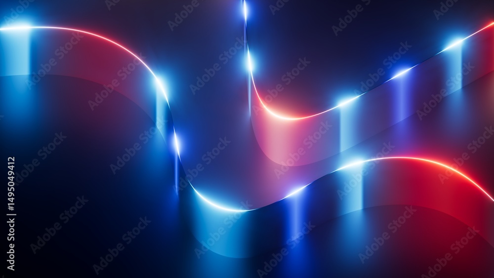 3d render. Abstract geometric background. Glowing curvy ribbon and bright gradient neon light in the dark. Modern wallpaper with aesthetic vibes
