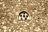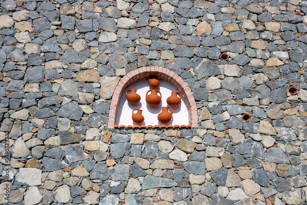 Natural stone wall with traditional Mediterranean clay jars in Foini village in Cyprus