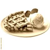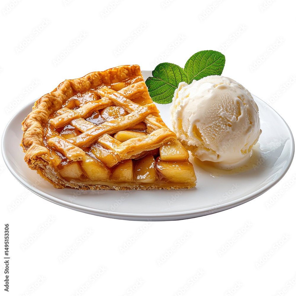 Deliciously Baked Apple Pie Slice with Golden Crust and Creamy Ice Cream Serving on White Plate Garnished with Fresh Mint Leaves