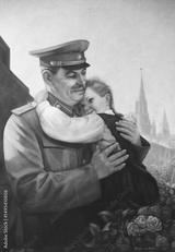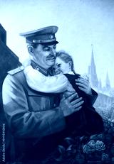Gori Georgia - Portrait of Joseph Vissarionovich Dzhugashvili aka Stalin hangs in town of his birthplace. Exhibit in Stalin Museum in Gori city