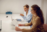 In a stylish meeting room, two women are engaged in a highly productive and insightful work discussion