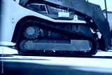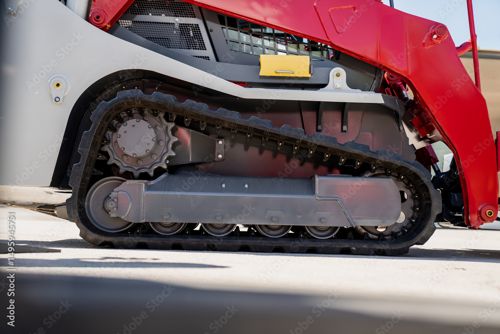 Compact skid steer loader track system side view with rubber tracks and ready to be given out to a clients