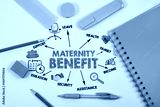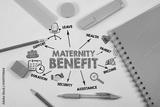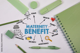 Maternity Benefit Concept. Illustration with icons, keywords and arrows. Green Office Supplies on White Background