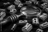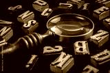 Vintage Letters and Magnifying Glass on Black Wooden Background for Research or Analysis Concept