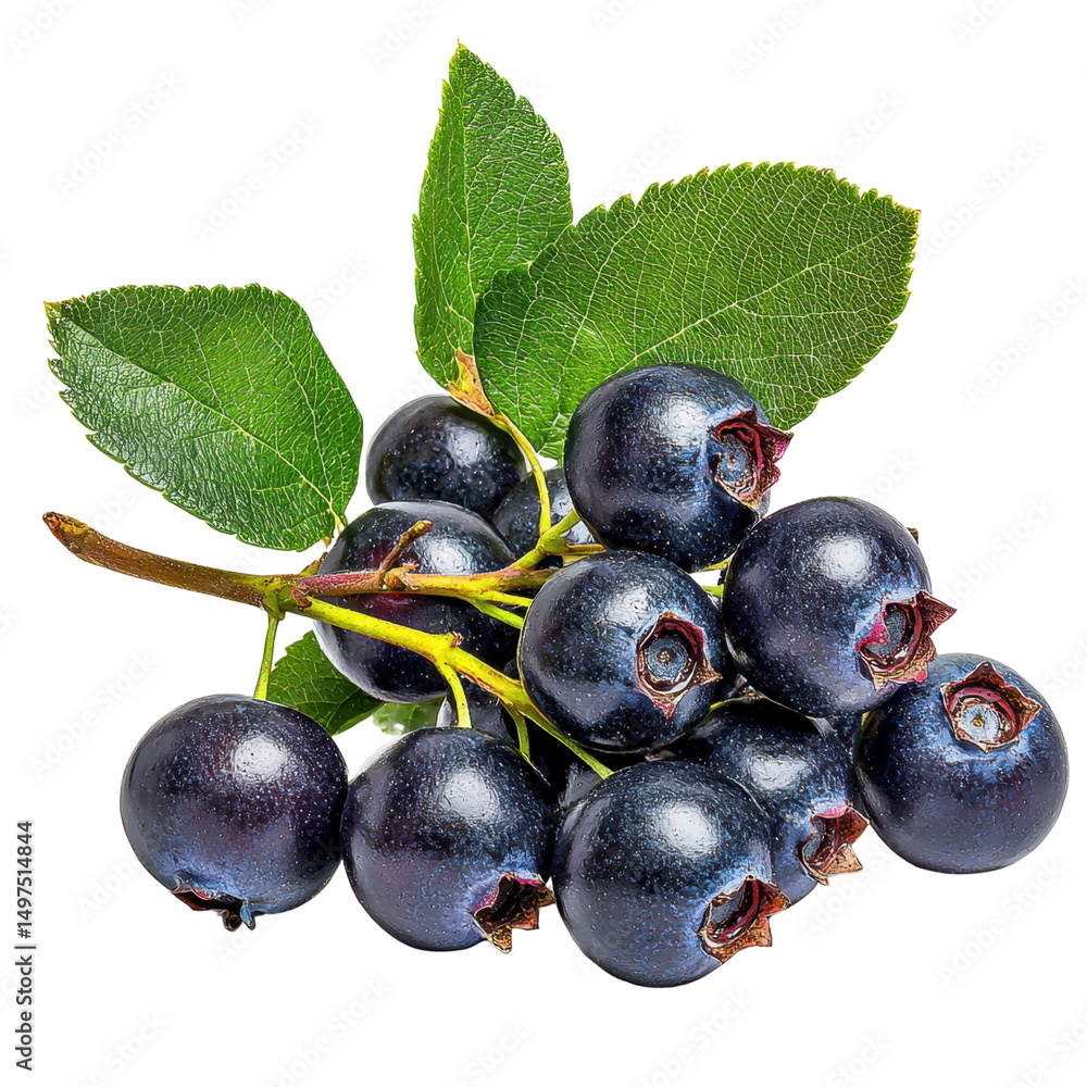 Fresh and Juicy Blueberries with Green Leaves on a White Background for Healthy Eating and Culinary Inspiration in High-Quality Stock Photography Transparent background, PNG
