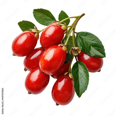 Fresh and Juicy Red Fruits with Green Leaves Hanging from a Branch on a White Background, Perfect for Healthy Eating and Culinary Delights Transparent background, PNG